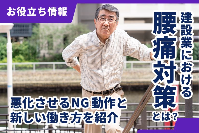 本記事では、建設現場で実践できる具体的な腰痛予防対策や腰を痛めやすいNG動作について解説。腰痛対策にもなる建設業の新しい働き方についてもまとめているため、ぜひ参考にしてみてください。