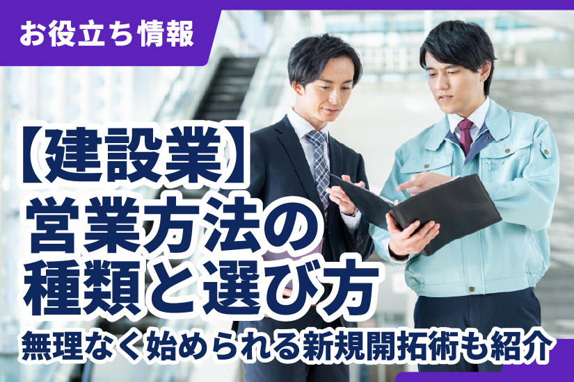 【建設業】営業方法の種類と選び方|無理なく始められる新規開拓術も紹介