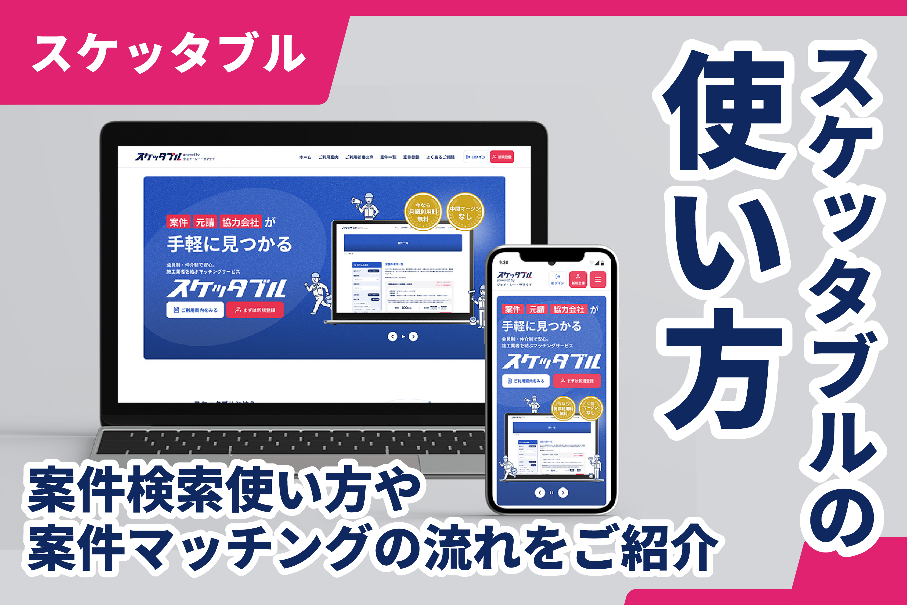 スケッタブルは、建設業界向けのマッチングサービスです。スケッタブルには「ユーザーマッチング」と「案件マッチング」の2つの方法があります。