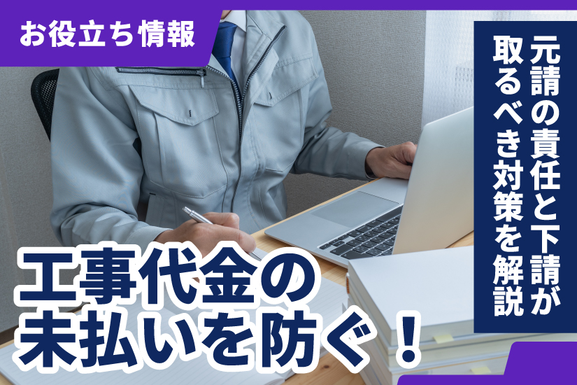 元請から仕事を請け負う中小企業や現場担当者にとって、工事代金の遅延や未払いも懸念事項ではないでしょうか。